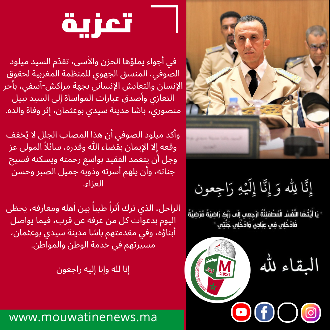 ... المنظمة المغربية لحقوق الإنسان والتعايش الإنساني تعزي باشا مدينة سيدي بوعثمان في وفاة والده عثمان حبيب الدينغشت 12, 2025