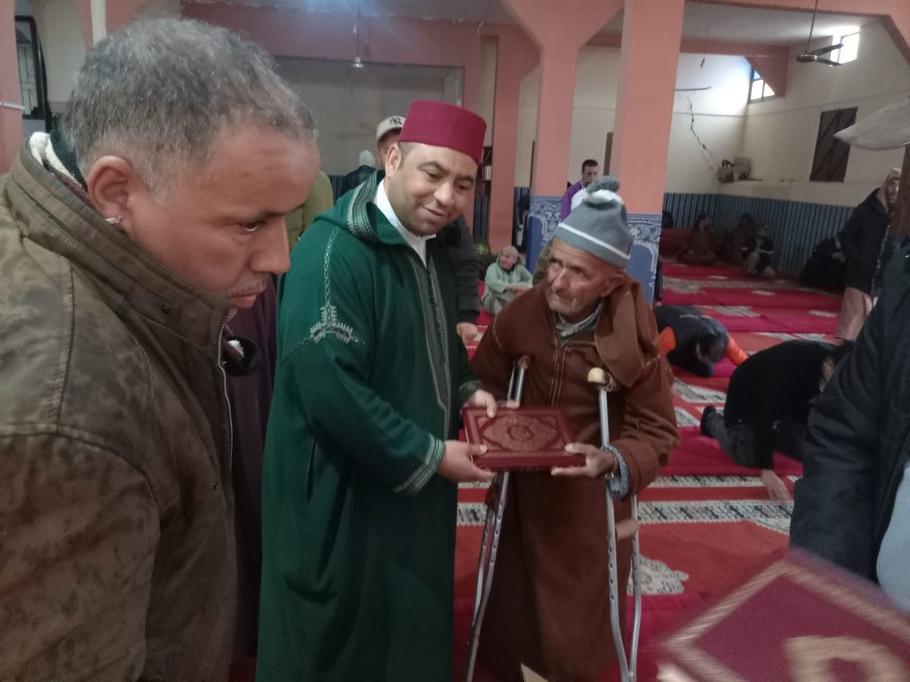 في إطار العناية بكتاب الله تعالى، وتحت إشراف ذ. عبدالله خرواش، المندوب الإقليمي للشؤون الإسلامية بشيشاوة، شهد المسجد المركزي بجماعة مجاط اليوم، بعد صلاة الظهر، عملية توزيع المصحف الشريف، بحضور ثلة من الأئمة المرشدين، إلى جانب ذ. رشيد احمزاوي، رئيس مكتب الشؤون الدينية بالمندوبية، والمتفقد المساعد بجماعة مجاط.