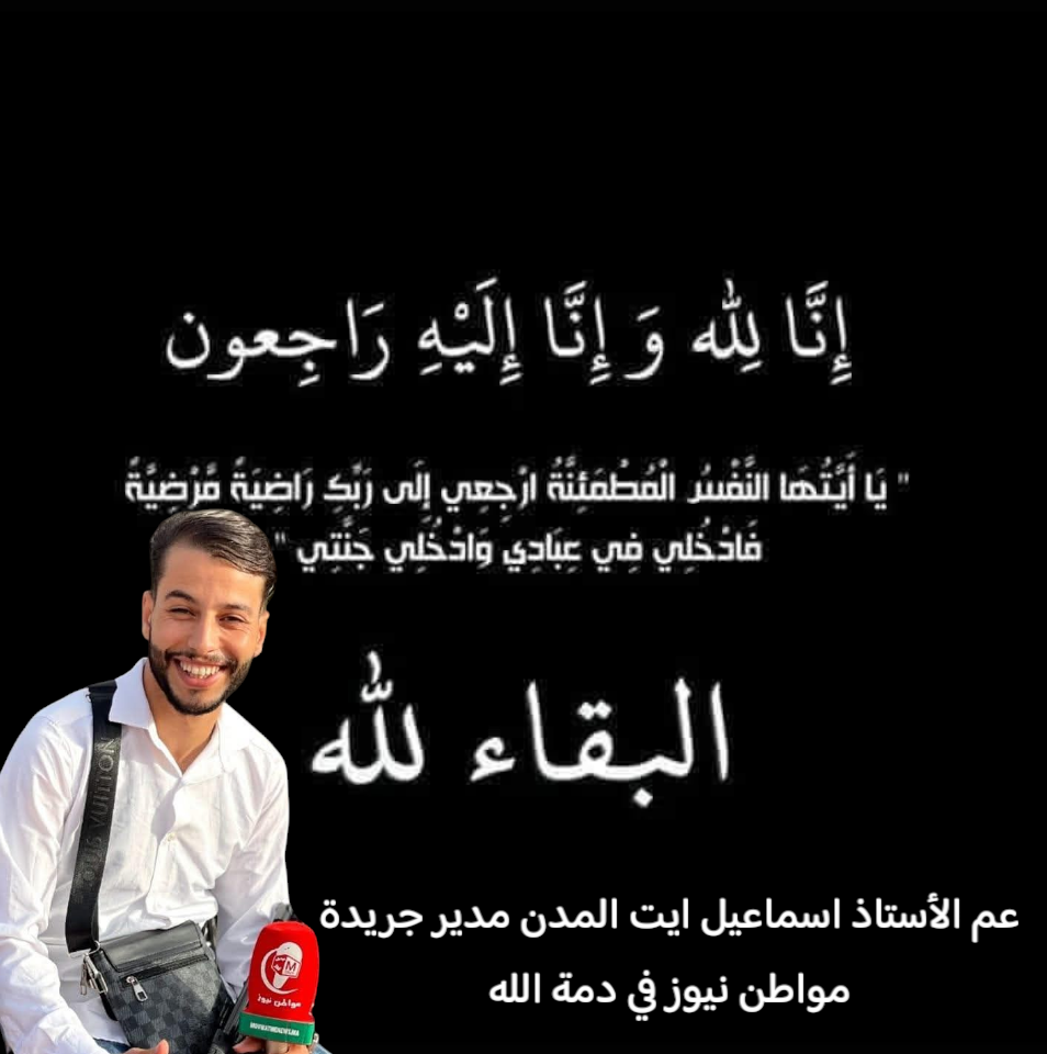 بقلوب يملؤها الإيمان بقضاء الله وقدره، وبمشاعر يعتصرها الحزن والأسى، تلقّى طاقم جريدة مواطن نيوز الإلكترونية والورقية نبأ وفاة المشمول برحمة الله، الحاج محمد أيت المدن، عم الأستاذ إسماعيل أيت المدن، مدير الجريدة.
