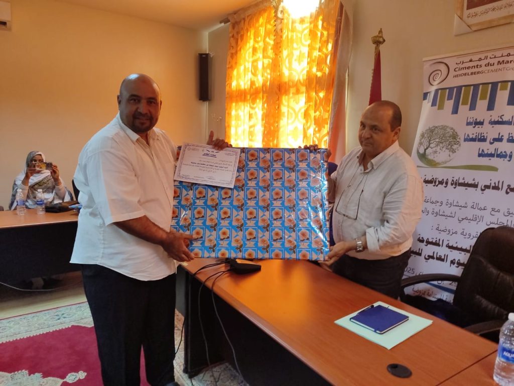 وقد جرى الحفل خلال الندوة العلمية التحسيسية التي احتضنها مقر جماعة شيشاوة، بحضور عدد من ممثلي المجتمع المدني، والتعاونيات المحلية، وشباب المدينة الذين شاركوا في حملة النظافة والتجميل التي شملت عدة أحياء سكنية.