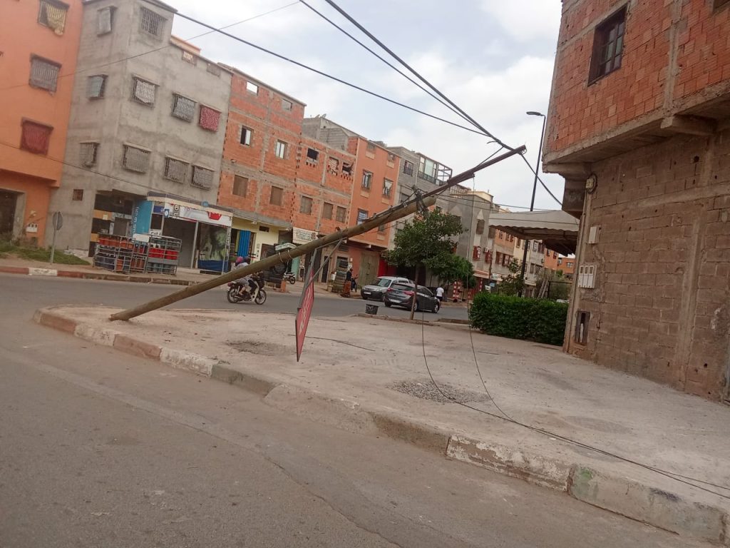 العمود المنهار أصبح يشكل خطراً حقيقياً على مستعملي الطريق، خصوصاً الأطفال وراكبي الدراجات النارية، كما تسبب في إرباك حركة السير والمرور بالحي، في ظل غياب أي تدخل فوري من الجهات المعنية أو الشركة المسؤولة.