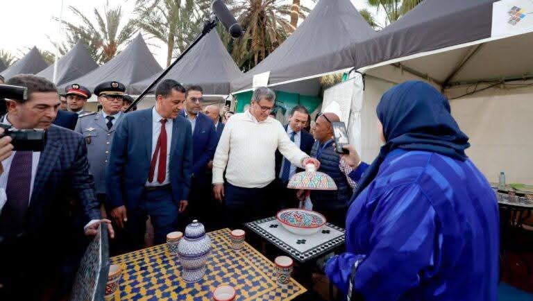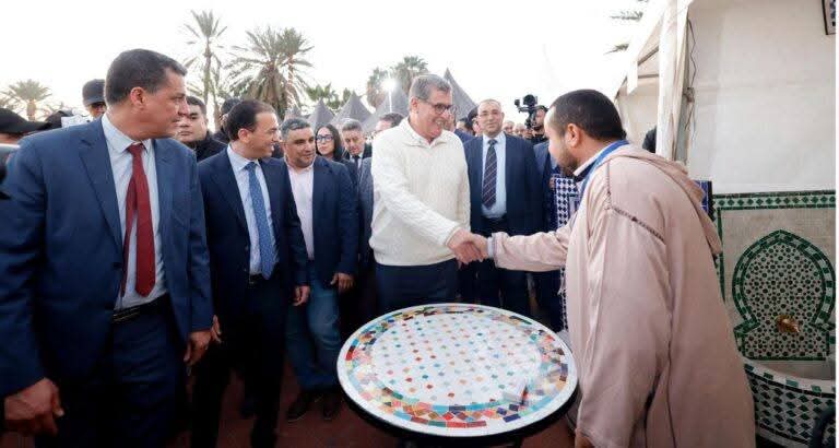 وبهذه المناسبة، قام السيد أخنوش، الذي كان مرفوقا بكاتب الدولة المكلف بالصناعة التقليدية والاقتصاد الاجتماعي والتضامني، لحسن السعدي، ووالي جهة سوس ماسة عامل عمالة أكادير إداوتنان سعيد أمزازي، ورئيس مجلس جهة سوس ماسة، كريم شنكلي، ورئيس غرفة الصناعة التقليدية لجهة سوس ماسة، عبد الحق ارخاوي، بجولة عبر مختلف أروقة هذا المعرض الذي يهدف إلى الترويج للمنتوجات المحلية وتسليط الضوء على مهارة وحرفية الصناع التقليديين المحليين