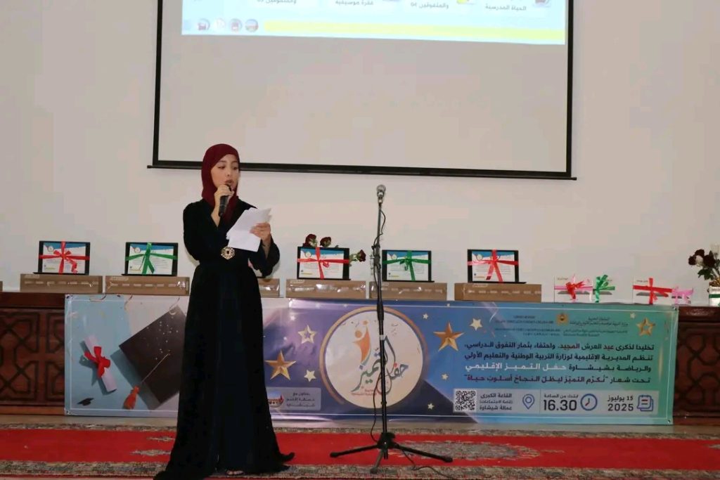 ويأتي هذا الحفل الذي احتضنته القاعة الكبرى لعمالة الإقليم، تحت شعار: “نكرّم التميز… ليظل النجاح أسلوب حياة”، احتفاءً بالتلميذات والتلاميذ المتفوقين في مختلف الأسلاك التعليمية خلال الموسم الدراسي 2024/2025، وترسيخاً لقيم الاعتراف والتحفيز على التميز والاجتهاد.