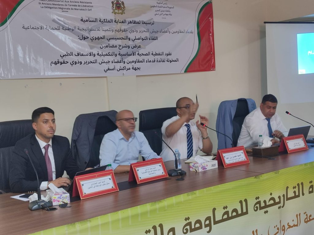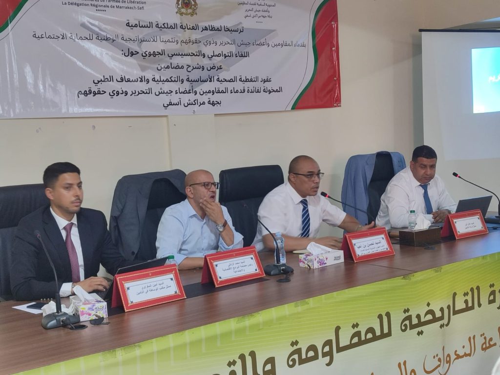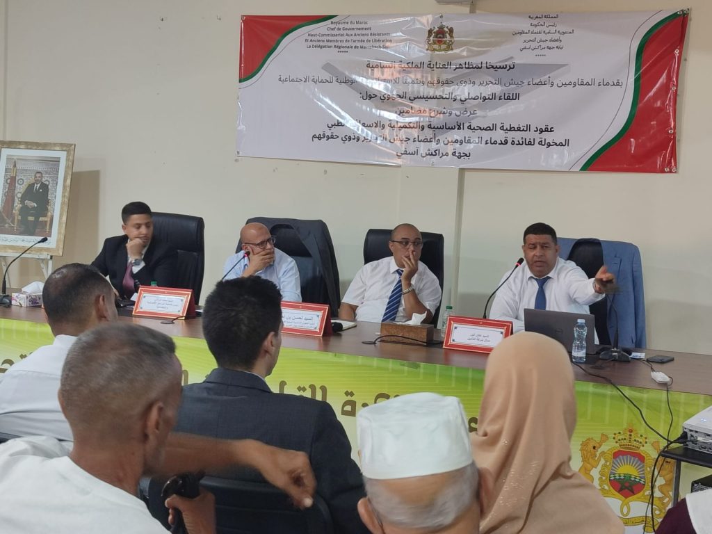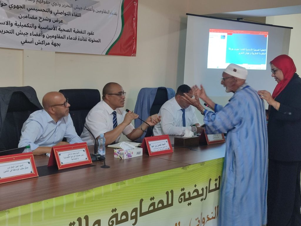 وشكل اللقاء مناسبة هامة لتسليط الضوء على التغطية الصحية المخصصة لفائدة قدماء المقاومين وأعضاء جيش التحرير وذوي حقوقهم، وكذا لتوضيح الإجراءات والمساطر المعتمدة للاستفادة من هذه الخدمات، بما يضمن تكافؤ الفرص وتيسير الولوج إلى الخدمات الطبية الأساسية والمكملة.