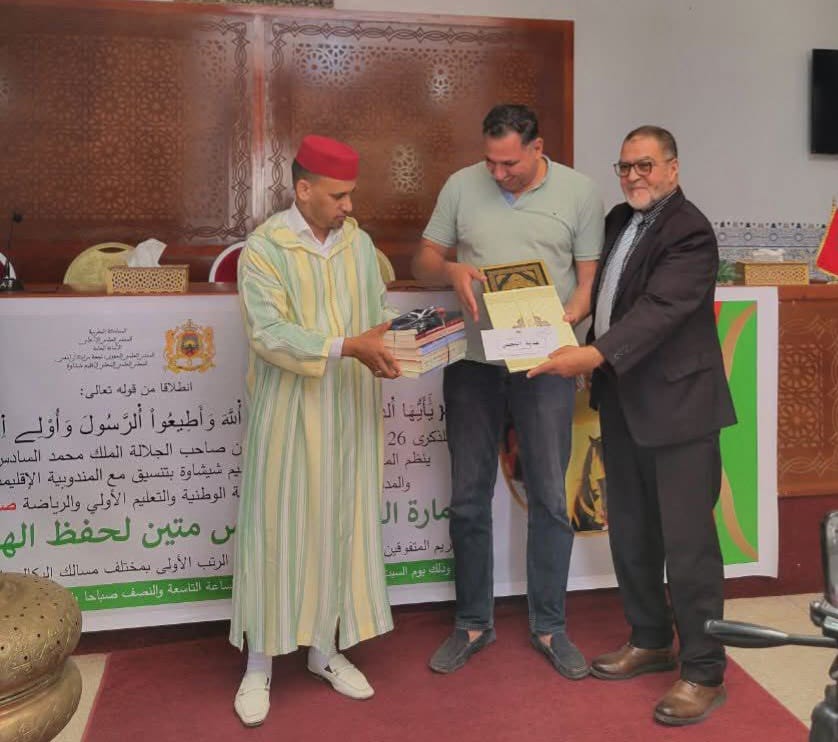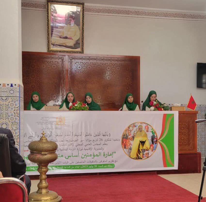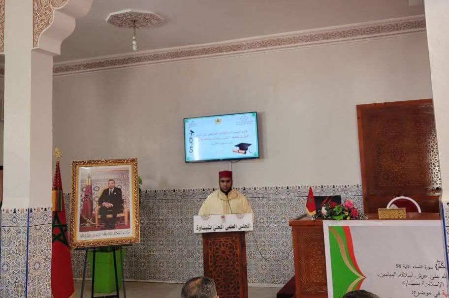 وفي إطار أنشطته الدينية والثقافية والعلمية، وتنزيلا لمشروع خطة تسديد التبليغ، من أجل تحقيق الحياة الطيبة، واحتفاء بالتلميذات والتلاميذ المتفوقات والمتفوقين بمختلف الأسلاك والشعب، من السنة الثانية بكالوريا موسم 2024/ 2025 نظم المجلس العلمي المحلي لإقليم شيشاوة بتنسيق مع المندوبية الإقليمية للشؤون الإسلامية بشيشاوة، والمديرية الإقليمية لوزارة التربية الوطنية والتعليم الأولي والرياضة في قاعة الندوات والمحاضرات التابعة للمجلس العلمي المحلي صبيحة علمية صباح يومه السبت 26 يوليوز 2025 في موضوع: ” إمارة المؤمنين أساس متين لحفظ الهوية وتبليغ الدين”،