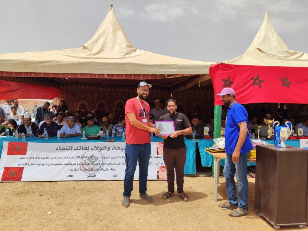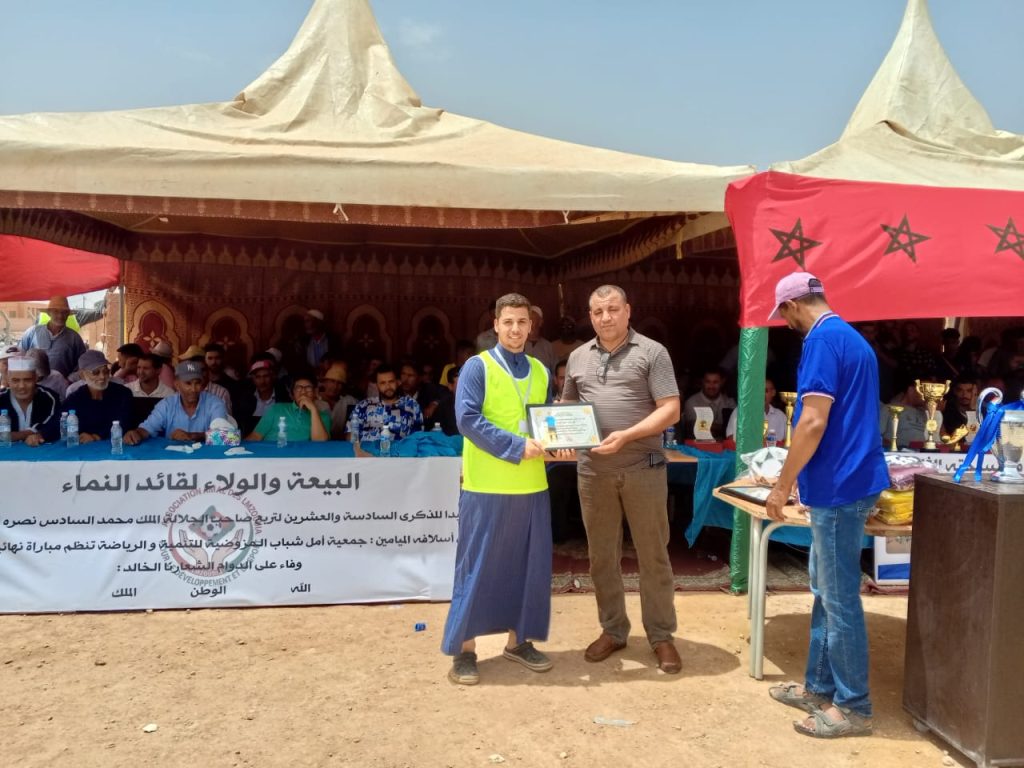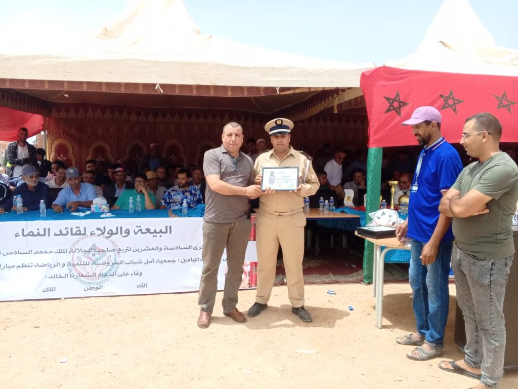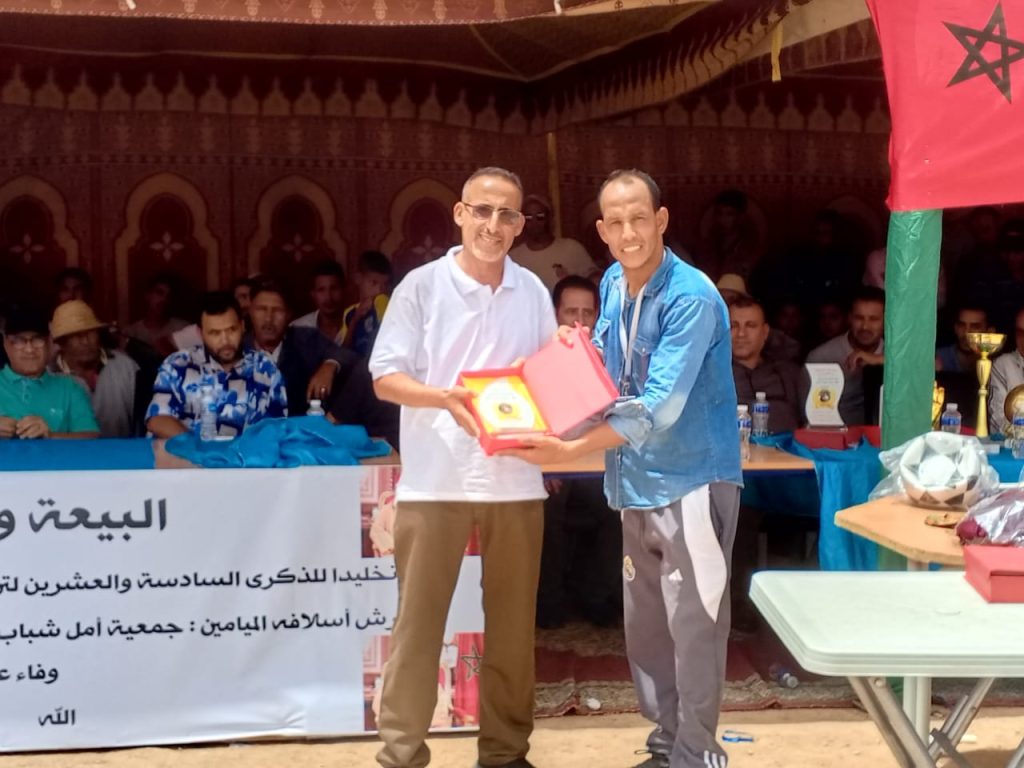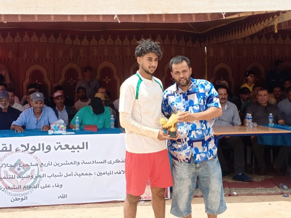 وفي ختام هذه التظاهرة، تم تكريم عدد من الشخصيات الرسمية والرياضية، إلى جانب توزيع جوائز وشهادات تقديرية على الفرق المشاركة، وذلك في أجواء احتفالية اتسمت بروح رياضية عالية، جسّدت أهداف الجمعية المنظمة في ترسيخ قيم التآزر والانتماء، وتعزيز دور الرياضة كرافعة للتنمية المحلية.