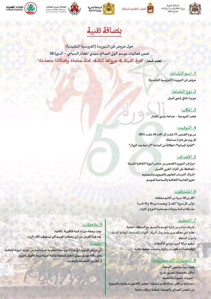 النسخة الماضية من الموسم شهدت نجاحاً لافتاً وإشادة واسعة من مختلف المشاركين والزوار، ما يرفع سقف التطلعات لهذه الدورة، خاصة مع الإقبال الكبير المرتقب من عشاق التبوريدة ومحبي التراث الشعبي. وتبقى طلقات البارود وصهيل الخيول من أبرز المشاهد التي تضفي على الموسم رونقاً خاصاً، وتعكس العمق الثقافي والفني للموروث المغربي الأصيل.