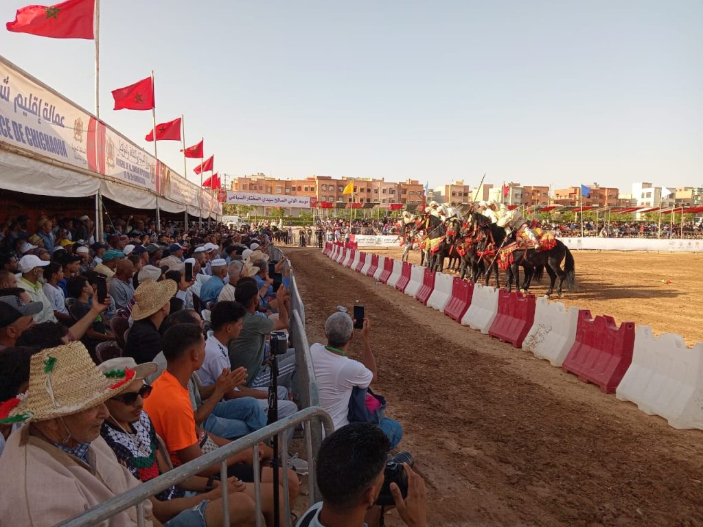 الموسم، الذي يُنظم على مدى أربعة أيام (21 و22 و23 و24 غشت)، عرف مشاركة 66 سربة قادمة من مختلف مدن المملكة حيث شهد اليوم الأول عروضًا افتتاحية للفروسية التقليدية “التبوريدة”، تميزت بتناسق الطلقات وتفاعل كبير من طرف الجمهور، الذي ملأ الفضاءات المحيطة بالمحرك منذ عصر اليوم .