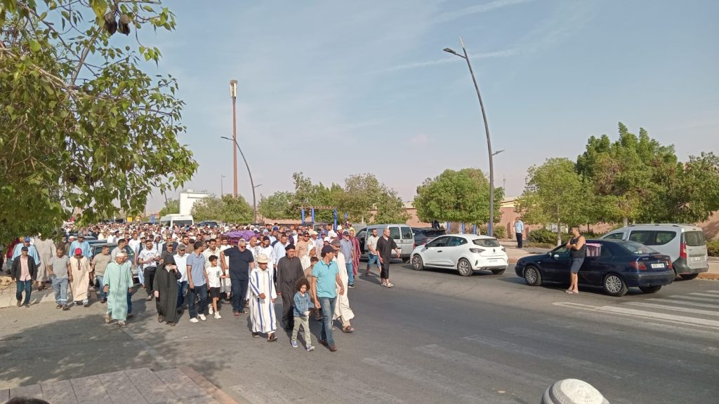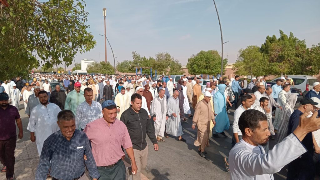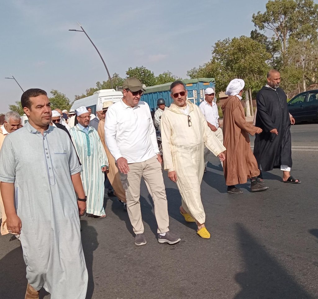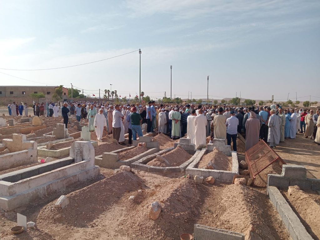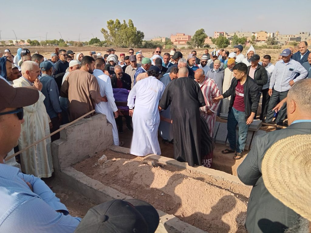 الجنازة التي حضرها عدد غفير من المشعيين أعيان ووجهاء الاقليم وموظفون ورؤساء جماعات وعائلة الفقيد وأصدقاؤه ومعارفه، ويتقدمهم النائب البرلماني مولاي هشام المهاجري.