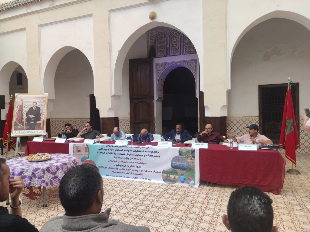 تميز المهرجان بتنظيم ندوة فكرية تحت عنوان: “تنمية جماعة بوابوض رهان وتثمين واستثمار مؤهلاتها.. السياحة القروية نموذجا”، احتضنها أحد المعالم السياحية بمنطقة أمتوكة، بمشاركة أساتذة وباحثين من مختلف الجامعات والمؤسسات، بينهم الدكتور توفيق عطيفي، والأستاذ بوجمعة أكوضار، والأستاذ الحسين بويعقوبي، والأستاذ ميلود أزرهون، إلى جانب الباحثين محمد تقديم، خالد القايدي، وعبد الصمد أوسوس. وقد تمحورت المداخلات حول سبل تطوير السياحة القروية والدينية وتعزيز الاستثمار في المؤهلات الطبيعية والثقافية للمنطقة.