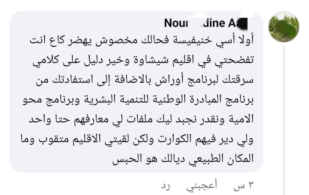 هذا الوصف أثار ردود فعل قوية، حيث رأى عدد من المتابعين أن مثل هذه التصريحات تمس بمصداقية العمل المؤسساتي وتقلل من قيمة الجهود المبذولة في تنزيل المشاريع التنموية والاجتماعية التي تندرج ضمن الاستراتيجية الوطنية الرامية إلى محاربة الهشاشة وتحسين ظروف عيش الساكنة.