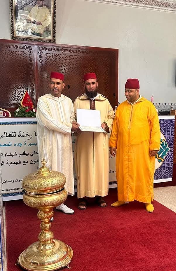- كان في تسيير وتنشيط الحفل الأستاذ المصطفى لديب : إمام مرشد بالمجلس العلمي المحلي لإقليم شيشاوة