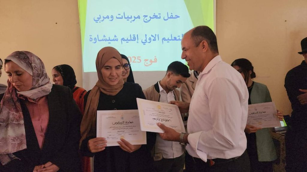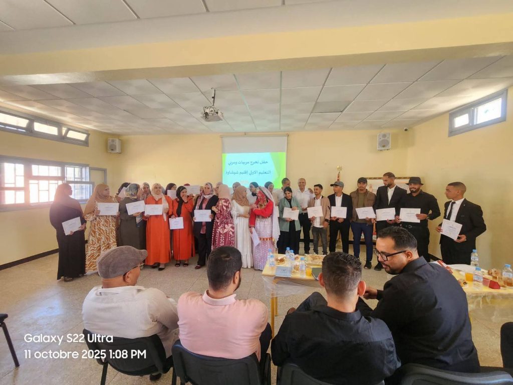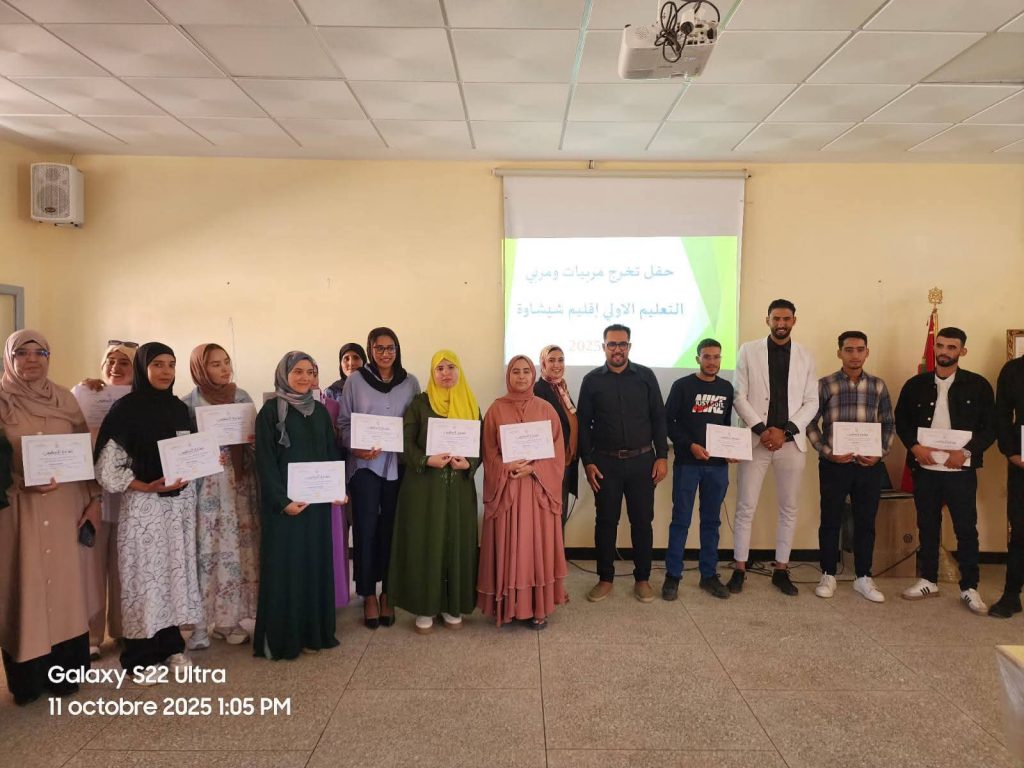 شهدت المديرية الإقليمية لوزارة التربية الوطنية والتعليم الأولي والرياضة بشيشاوة، يومه السبت 11 أكتوبر 2025، حفل اختتام التكوين الأساسي لمربيات ومربي التعليم الأولي – فوج 2025، بقاعة العلاوي بالثانوية التأهيلية البخاري، في أجواء رسمية جمعت بين الجدية والاحتفاء بالإنجازات.