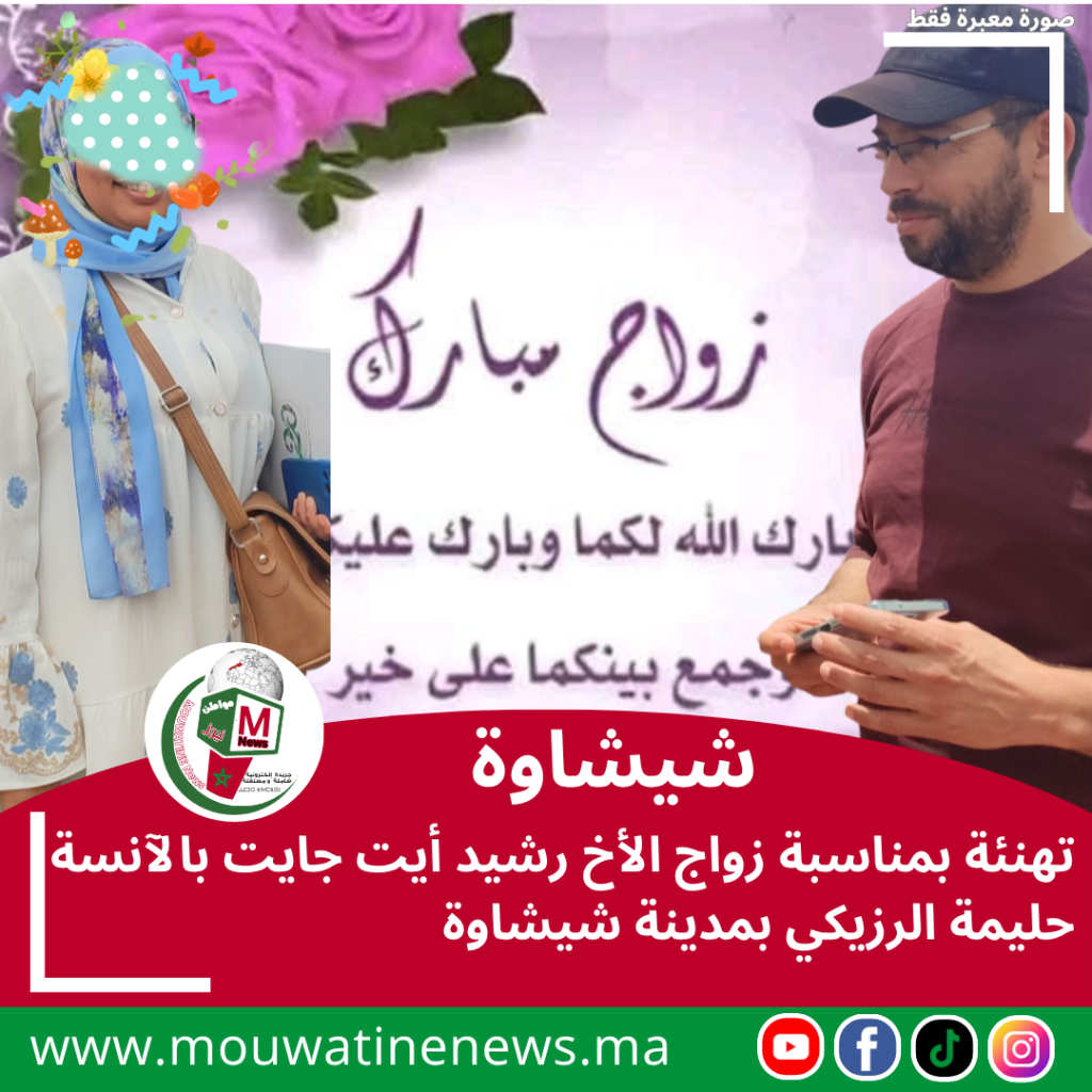 في أجواء تغمرها الفرحة والسرور، احتفل الأخ رشيد أيت جايت بزفافه الميمون على الآنسة حليمة الرزيكي، صاحبة مطبعة Rach Print بمدينة شيشاوة، وذلك وسط حضور الأهل والأصدقاء وزملاء العمل الذين شاركوا العروسين فرحتهما متمنين لهما حياة مليئة بالسعادة والهناء.