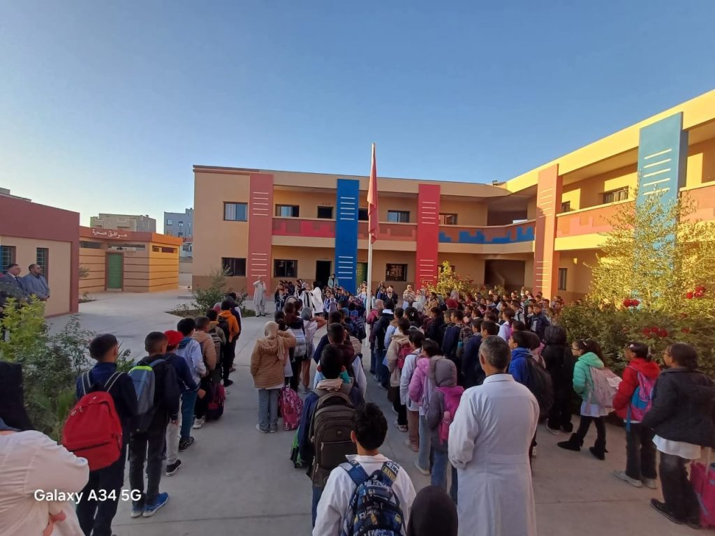 وقد استُهلت الزيارة بحضور تحية العلم الوطني وأداء النشيد الوطني رفقة تلميذات وتلاميذ المؤسسة إلى جانب السيد مدير المؤسسة والسيدات والسادة الأستاذات والأساتذة، وذلك في أجواء يطبعها الانضباط والالتزام والاعتزاز بالانتماء للوطن، حيث أشاد السيد المدير الإقليمي بالروح الوطنية التي أبان عنها المتعلمات والمتعلمون، وبحرص الأطر الإدارية والتربوية على ترسيخ قيم المواطنة والسلوك المدني داخل الفضاء المدرسي.