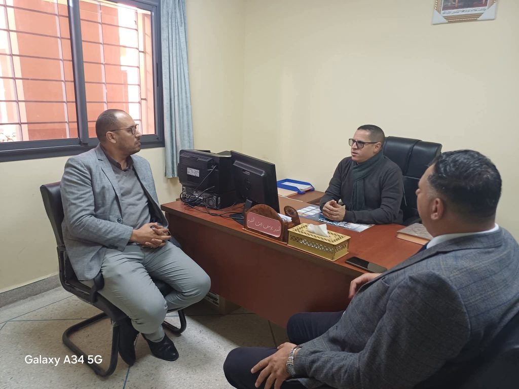 كما عقد السيد المدير الإقليمي، بالمناسبة، جلسة عمل وتواصل مع السيد مدير المؤسسة، خصصت للتداول في سبل تعزيز النتائج المحققة في إطار مشروع مؤسسات الريادة، وتقوية آليات التتبع والمواكبة البيداغوجية، وتثمين المبادرات الإبداعية التي تنخرط فيها المؤسسة، على مستوى تجويد التعلمات وتحسين الحياة المدرسية والانفتاح على المحيط الخارجي.