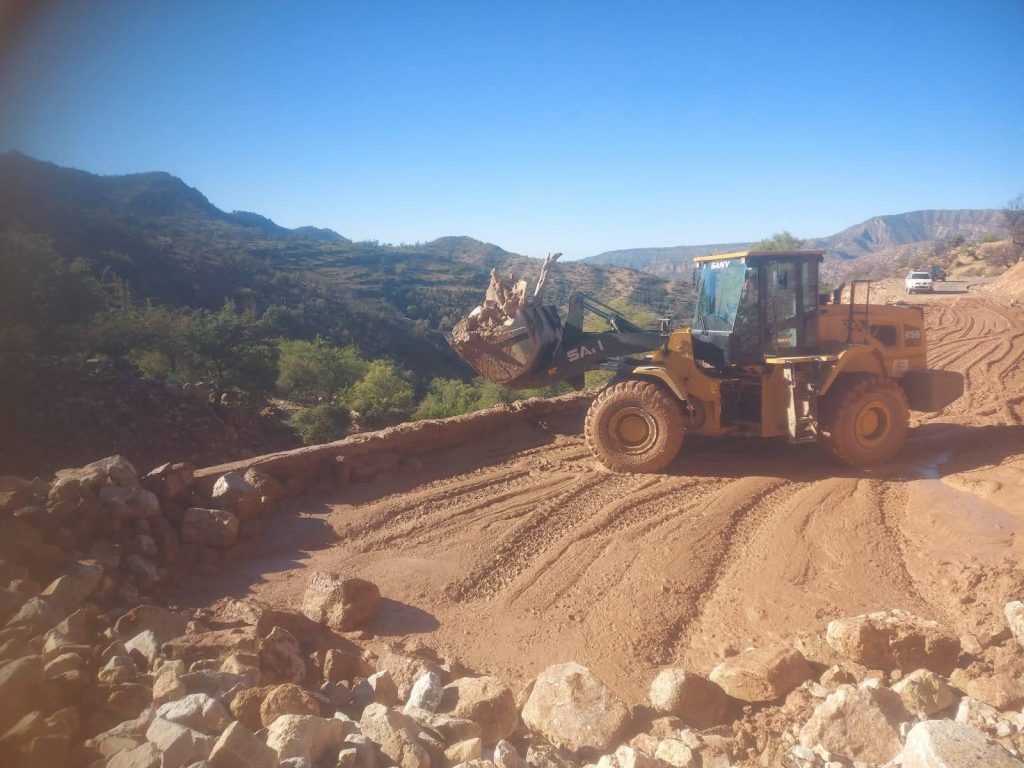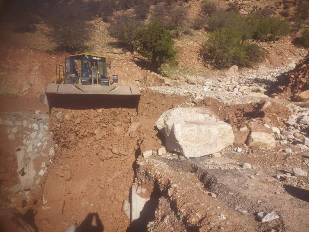 وفي هذا الإطار شهدت أشغال التدخل اليوم تواصل عمليات فتح وتنقية عدد من المحاور الطرقية المتضررة، خصوصًا على مستوى طريق الويداني، حيث شملت التدخلات مناطق تلعينين وتزكليمت إضافة إلى مقاطع طرقية أخرى تضررت بفعل السيول الجارفة التي أدت إلى تراكم الأوحال والأحجار وانجراف التربة مما تسبب في انقطاع جزئي لحركة السير وصعوبة تنقل الساكنة.وتندرج هذه التدخلات ضمن تعبئة شاملة لمصالح جماعة تمالوكت، حيث تم تسخير الآليات المتوفرة، إلى جانب تعبئة الأطر التقنية والعمال الجماعيين، قصد إعادة فتح الطرق والمسالك في وجه الساكنة في أقرب الآجال الممكنة، وضمان الحد الأدنى من شروط السلامة المرورية خاصة بالمناطق القروية المتضررة